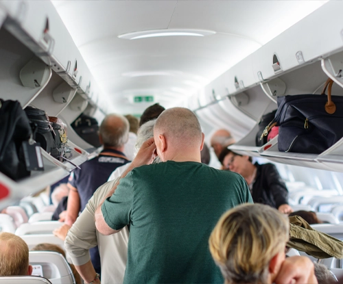 passengers exiting an airplane